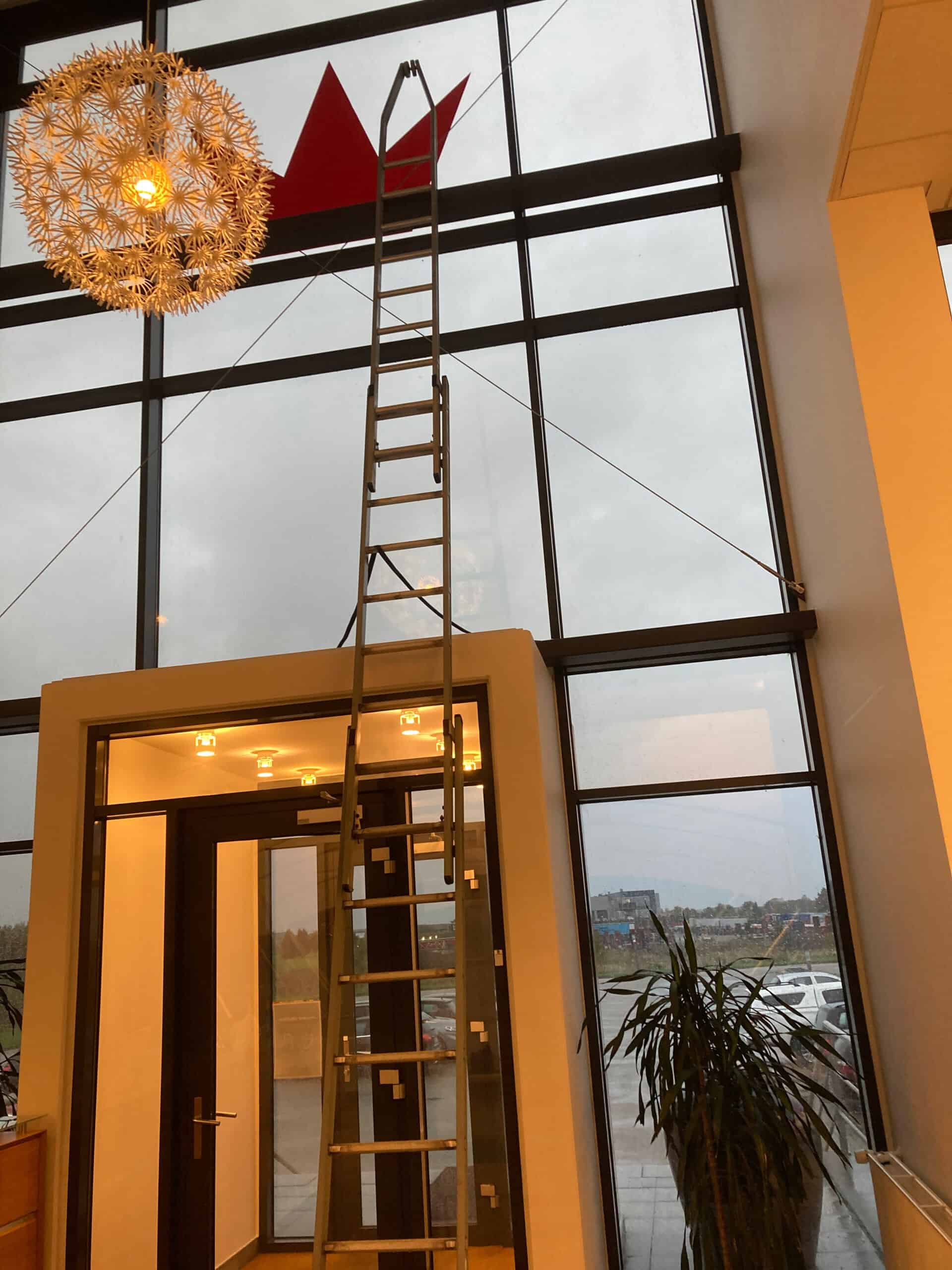 • Indvendig vinduespudsning i erhvervslokaler med højt til loftet